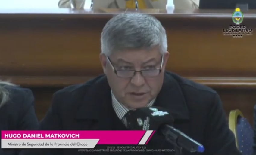 El ministro de Seguridad Hugo Matkovich acudió al Parlamento chaqueño este miércoles, a la sesión extraordinaria convocada para su interpelación, a pedido de diputados de la oposición. Estuvo acompañado del jefe de la Policía, Fernando Romero; la subsecretaria de Asuntos Jurídicos, Patricia Fernández; el director del Órgano de Control Institucional (OCI) de la Policía del Chaco, Ricardo Urturi; y el jefe de Departamento de Medicina Laboral de esta misma fuerza, Julio Enzo Manetti.