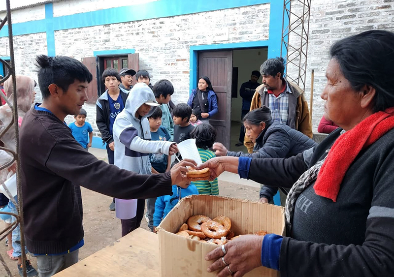Allí, las madres del barrio se encargan con mucho esfuerzo y dedicación de preparar la merienda, que consiste en chocolate caliente acompañado de pan o rosquillas, generando un espacio de contención y alimentación para los más pequeños.