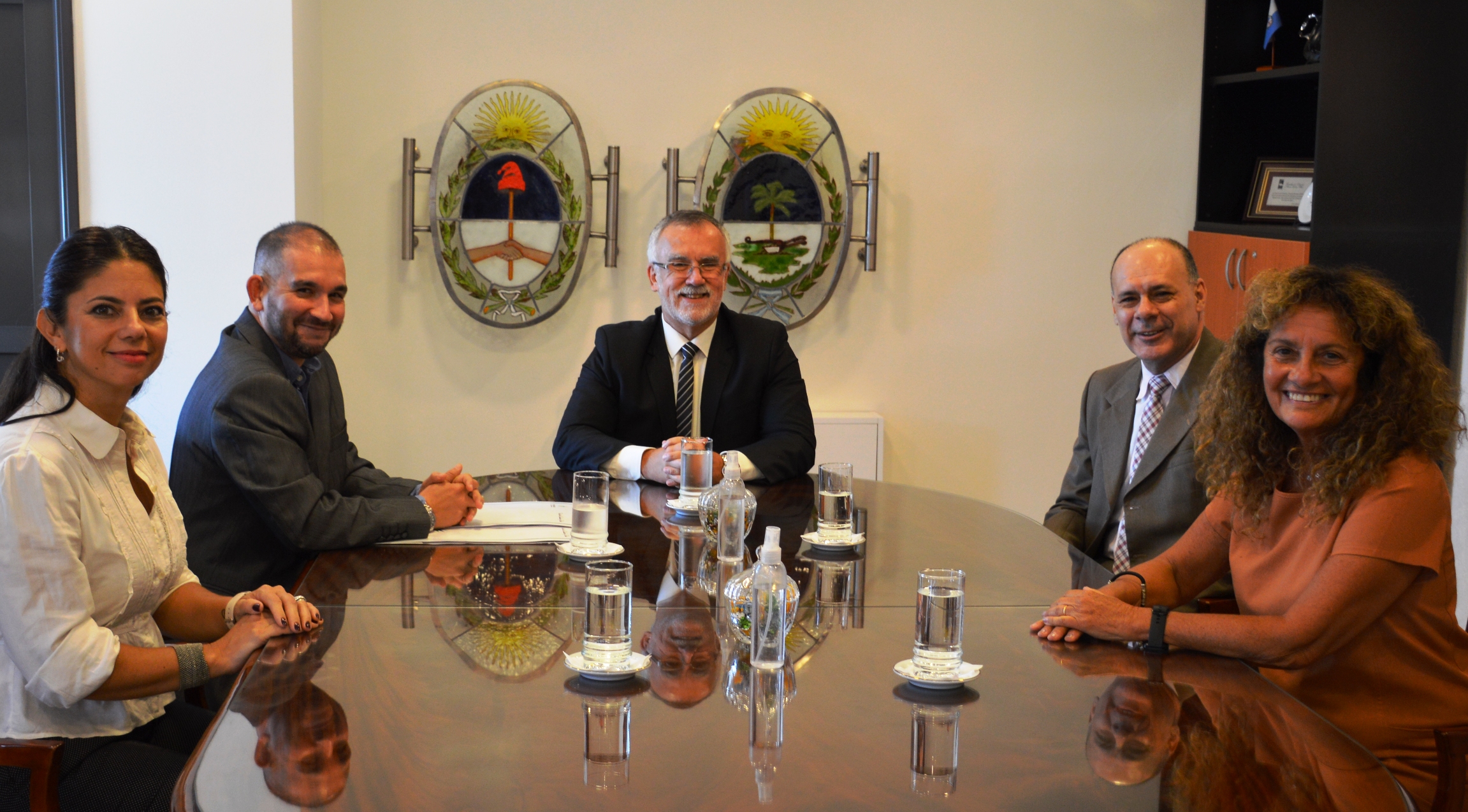 El presidente del Superior Tribunal de Justicia Víctor del Río, acompañado por los jueces del STJ Enrique Varela e Iride Isabel María Grillo, recibió en audiencia protocolar al defensor del Pueblo del Chaco Bernardo Voloj y a la secretaria de la Defensoría Ana Dorys Pérez Zamparo.