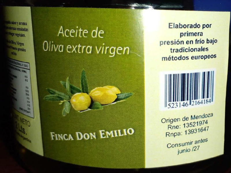A través de la Disposición 7120/2024, publicada en el Boletín Oficial, la ANMAT determinó: “Prohíbese la elaboración, fraccionamiento y comercialización en todo el territorio nacional y en las plataformas de venta en línea del producto Aceite de Oliva extra virgen, marca Finca Don Emilio, Origen de Mendoza, RNE 13521974 – RNPA 13931647, en cualquier presentación, lote y fecha de vencimiento, por carecer de registros sanitarios de establecimiento y producto, y por estar falsamente rotulado al exhibir en sus rótulos registros sanitarios inexistentes, resultando ser en consecuencia un producto ilegal”.