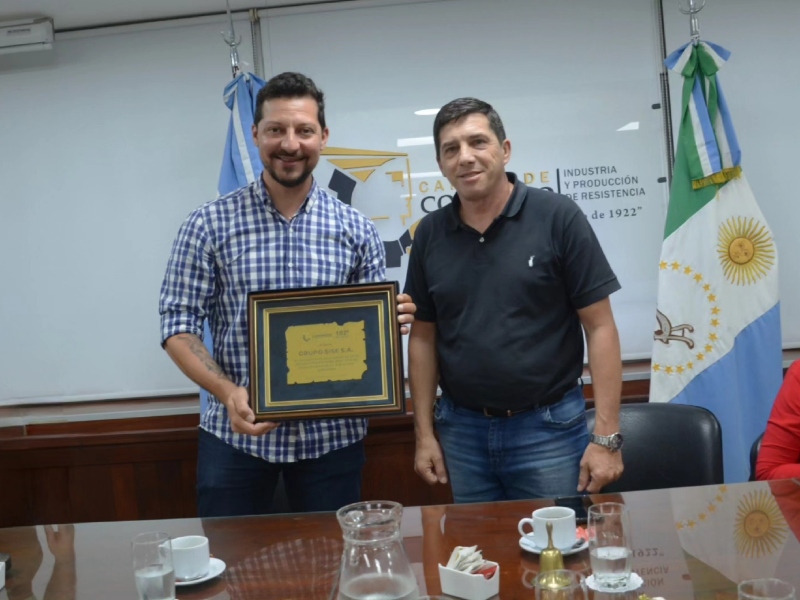 En el marco de la reunión del Consejo Directivo de la Cámara de Comercio de Resistencia, el titular de la institución Walter Bistman hizo entrega de una placa al presidente de SISE Argentina, Marcelo Freschi en reconocimiento a su trayectoria empresarial y por la distinción en el "Premio Casel 2024" recibida por su compromiso con el desarrollo sustentable.
