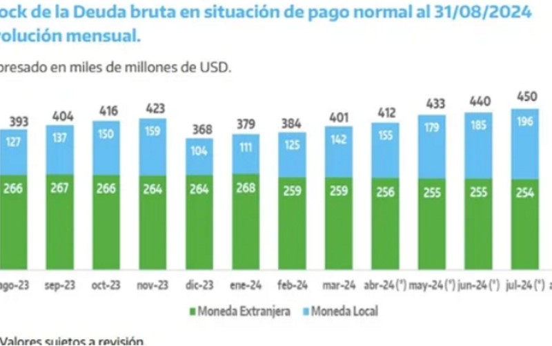 La deuda del Estado nacional llegó al récord de US$ 455.935 millones en agosto