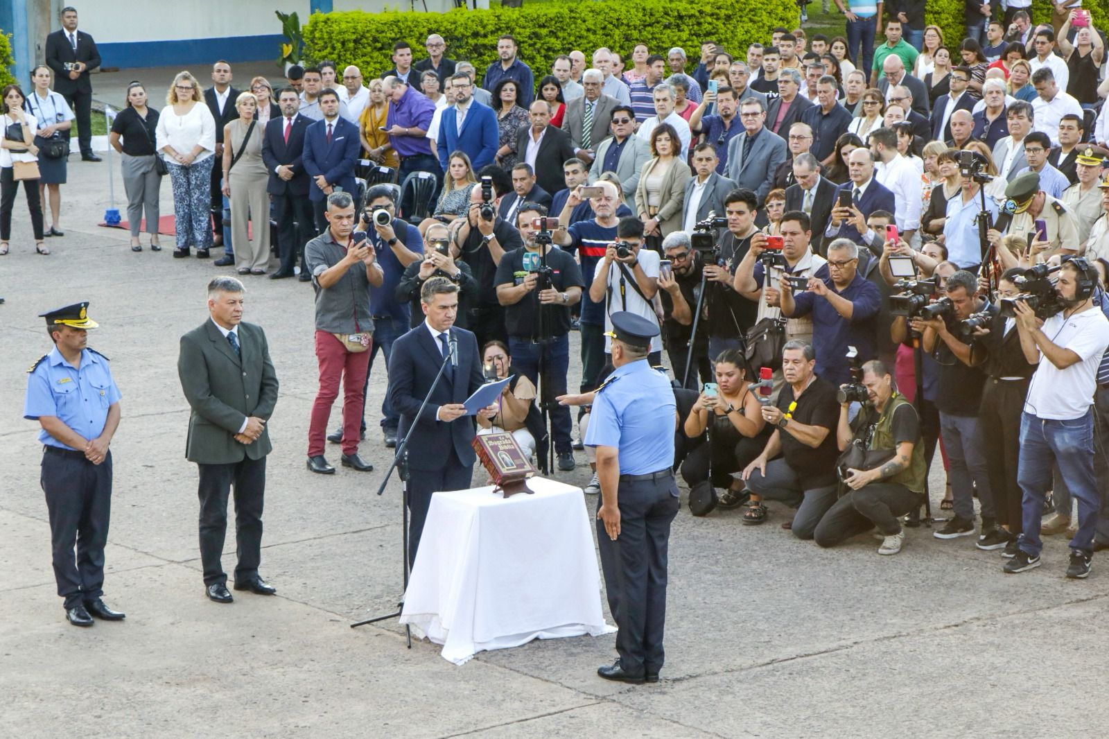 Participaron del acto de Jura la presidente de la Cámara de Diputados, Carmen Delgado; la presidente del Superior Tribunal de Justicia, Isabel Grillo; la presidente del INSSSEP, Irene Dumrauf; secretarios y subsecretarios del Ejecutivo provincial; autoridades del Ministerio Público Fiscal; titulares de entes autárquicos; legisladores provinciales; representantes de foros vecinales; oficiales superiores, jefes, subalternos y personal policial.