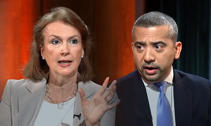 Mehdi Hasan debate con la ex canciller argentina Diana Mondino. (Gentileza Aljazeera)