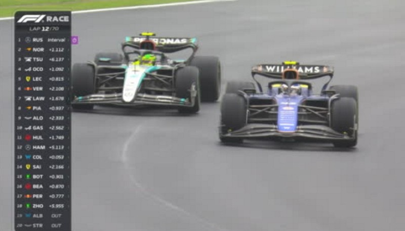 Aunque su fin de semana en São Paulo no haya sido el más destacable, también le brindó a la gente un adelantamiento espectacular contra otro campeón del mundo. En esta ocasión la víctima fue Lewis Hamilton, en la primera carrera que Colapinto estaba afrontando con lluvia en la Fórmula 1. El argentino atacó al Mercedes por la zona interior de la entrada a la S de Senna, en una maniobra que fue al límite, lo que desató la locura de la marea albiceleste en las tribunas.