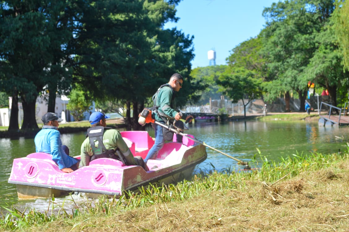 Al mismo tiempo, operarios que integran el grupo denominado “Los Carpinchos” se encargaron de la limpieza de la laguna que está dentro del Parque y la eliminación de camalotes.