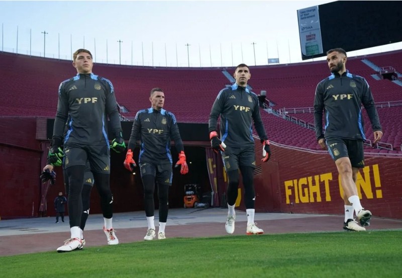 Entrenamiento de los arqueros de la selección argentina.