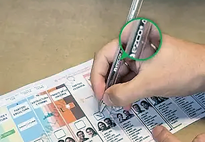 Para otra verificación, la CNE afirmó a Chequeado —medio que, junto a AFP, coordina la alianza Reverso— que recomienda que los electores utilicen los bolígrafos entregados por el presidente de mesa, pero pueden llevar su propia lapicera.