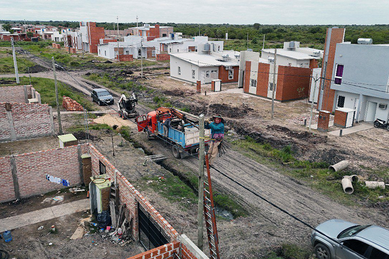 Los esfuerzos se centran en la construcción de veredas, la mejora de calles con ripio, la instalación de desagües pluviales y el fortalecimiento de la red eléctrica, que se verá optimizada con la instalación de siete transformadores para abastecer el complejo habitacional.