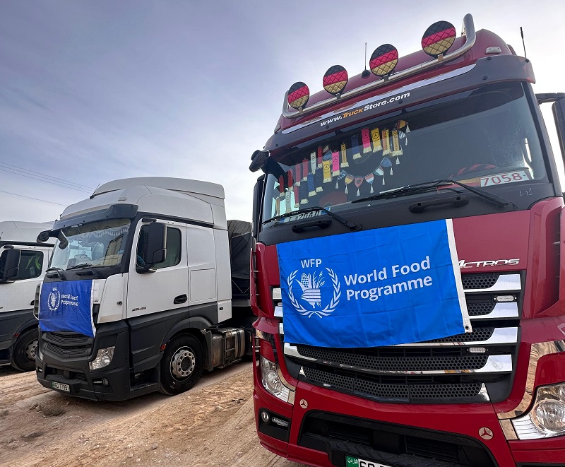 El convoy, de 46 camiones, organizado por el PMA y la ONG jordana JHCO, transportaba 750 toneladas de ayuda alimentaria y fue posible gracias a “semanas de coordinación” con todas las partes, indicó el PMA en un comunicado.