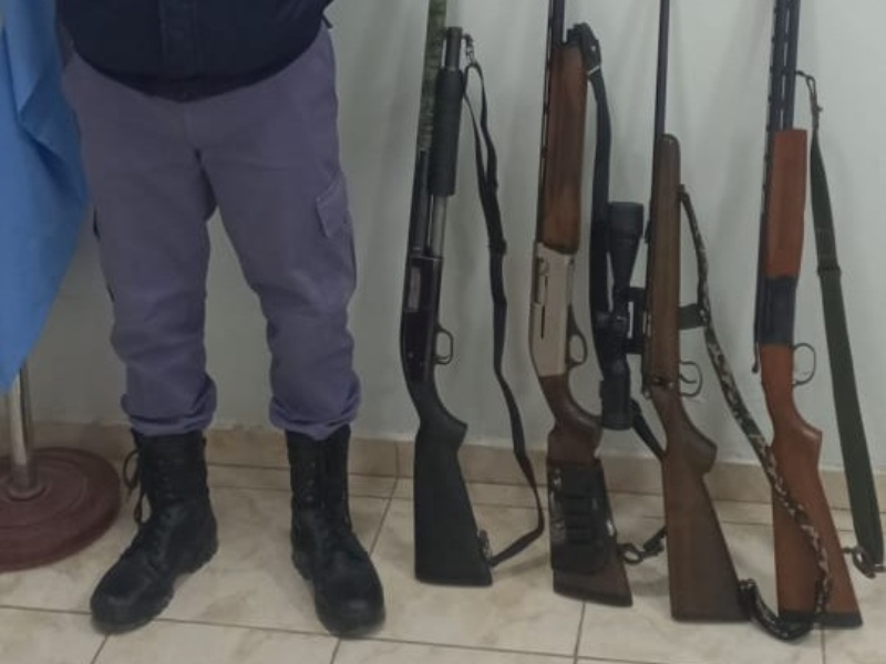 Durante el procedimiento se incautaron cuatro armas de fuego: un rifle semiautomático calibre .22, una escopeta superpuesta calibre 28, una escopeta semiautomática calibre 12 y una escopeta a repetición del mismo calibre.