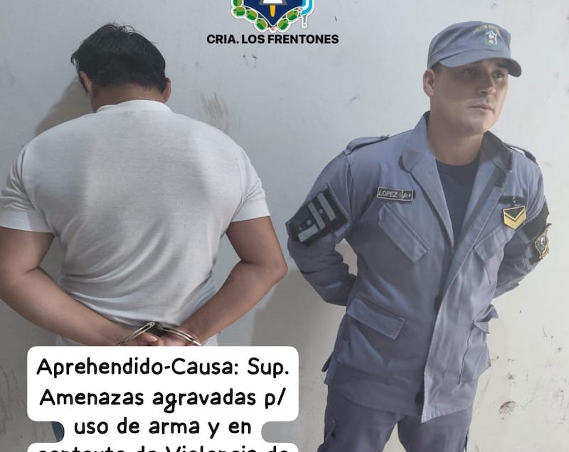 Tras la denuncia, el personal de la comisaría de la localidad procedió a la aprehensión del acusado, quien fue notificado de su situación legal conforme a lo dispuesto por el fiscal en turno, quedando a disposición de la Justicia en el marco de la causa por “Supuestas Amenazas Agravadas con uso de Arma en Contexto de Violencia de Género”.