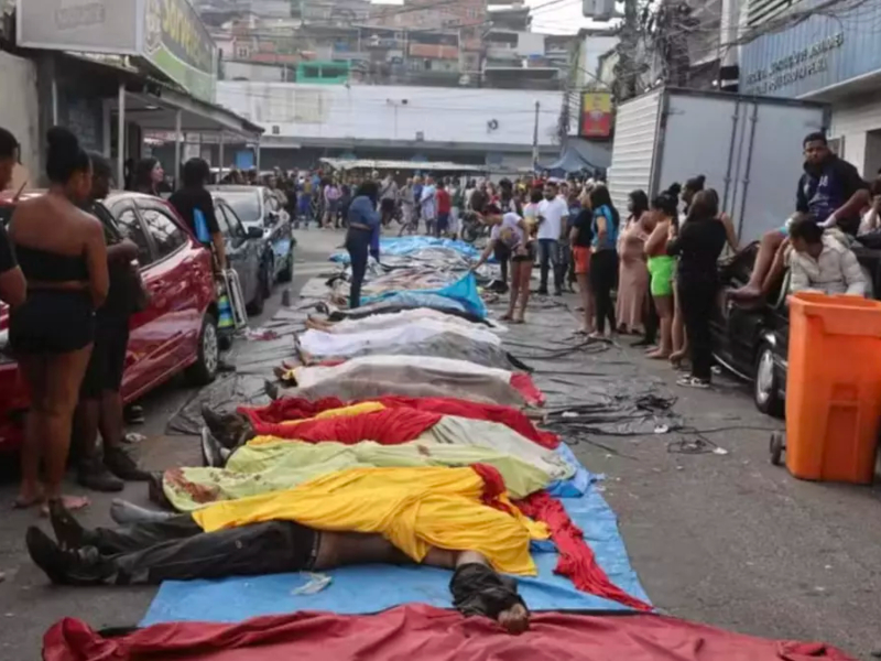 Al menos 40 cuerpos sin vida fueron encontrados por los habitantes de las favelas de Río de Janeiro que ayer fueron escenario de una letal operación policial y fueron colocados por los vecinos en una plaza del barrio de Penha.
