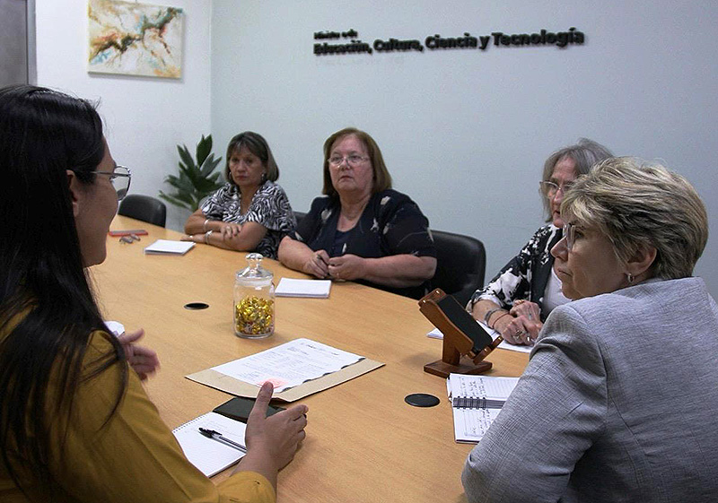 También estuvieron en esta reunión las subsecretarias de Educación, Isabel Sanchuk, y de Descentralización Educativa, Marta Fassano; y la directora general de Gestión Educativa, Mirta Candia.