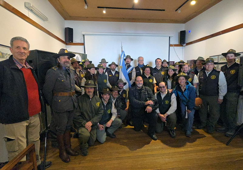 Por su parte, el acto conmemorativo organizado por el Parque Nacional Nahuel Huapi se desarrolló en la Sala Chonek del Museo de la Patagonia, en Bariloche, con la presencia del vicepresidente del organismo, Marcelo Forgione, junto al intendente del área protegida, Dámaso Larraburu; el jefe de Prefectura Naval Argentina, Prefecto Principal Marcelo Miguel de Bernardo, y el jefe del Escuadrón 34° Bariloche de Gendarmería Nacional, Comandante Principal Alberto Martín García; junto a guardaparques retirados y personal del Parque y el Museo.