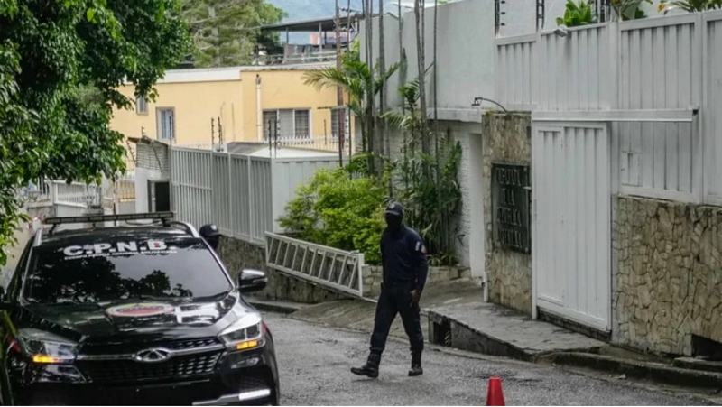El régimen chavista argumenta que "tienen pruebas sobre el uso de las instalaciones para la planificación de actividades terroristas e intentos de magnicidio". En el edificio hay seis refugiados, asistentes de la opositora María Corina Machado.