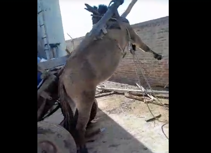 Inicio » Maltrato animal en Sáenz Peña: un burro quedó colgando de las varas un carro por exceso de carga