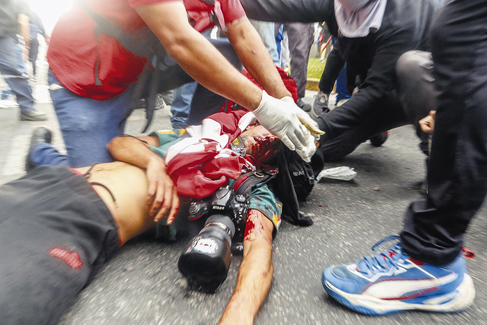 Una represión policial feroz comenzó antes aún de que empezara la marcha por los jubilados a la que se sumaron hinchas de gran cantidad de clubes, de todas las edades, y familias enteras que fueron calificados de "barrabravas". Mientras la ministra Bullrich continuaba amenazando por televisión, un joven fotógrafo que recibió un impacto en la frente luchaba por su vida en el hospital Ramos Mejía, con daño cerebral grave. Fue una verdadera cacería.