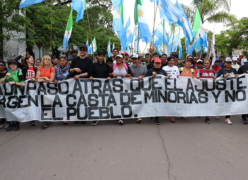 En la mañana, bajo la consigna de ‘Ni un paso más, que el ajuste lo pague la casta deminorías y no el pueblo’, la movilización culminó sin incidente alguno con la presencia de Hugo “Cachorro” Godoy, secretario General de la CTA A, así como de dirigentes de UPCP, la CCC y una importante cantidad de organizaciones sociales, sindicales y políticas.