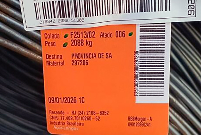 El acero de producción brasilera está marcado en las etiquetas y empezará a ser repartido en los próximos días. Se trata de Alambrón 640, uno de los subtipos que se producían en el país y que ahora Acindar resolvió traer importado.
