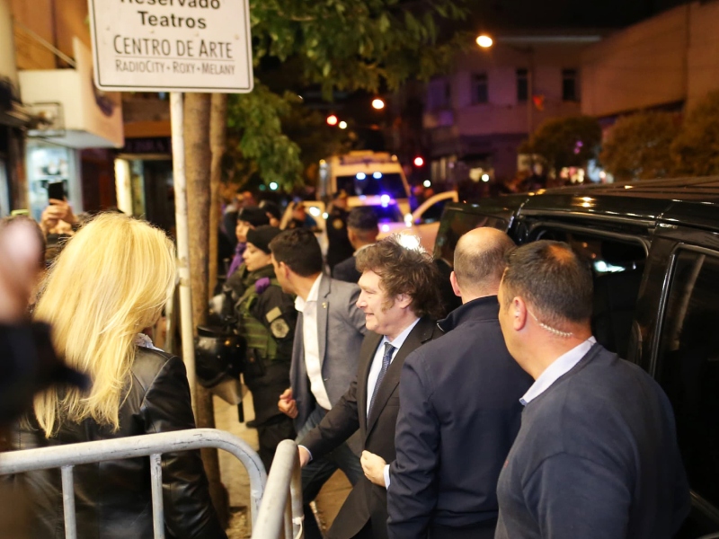 El Presidente se encuentra en la ciudad balnearia de Mar del Plata, donde anoche asistió al espectáculo que su pareja, Fátima Flórez, protagoniza en el centro de arte Roxy, Radio City, Melany de Mar del Plata, y al finalizar la obra subió al escenario.
