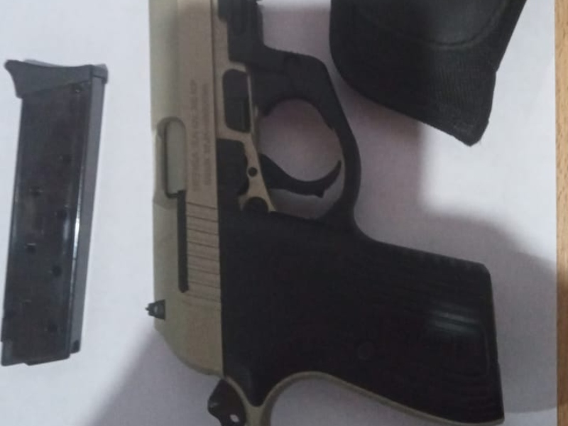 Tras el choque, el automovilista denunció que el motociclista lo había amenazado con un arma de fuego, por lo que los efectivos le solicitaron que exhibiera sus pertenencias. En su bolso, encontraron una pistola Bersa calibre .380, con cargador y ocho cartuchos, además de una cédula de ANMAC. Al verificar el arma, constataron que tenía una bala en la recámara.