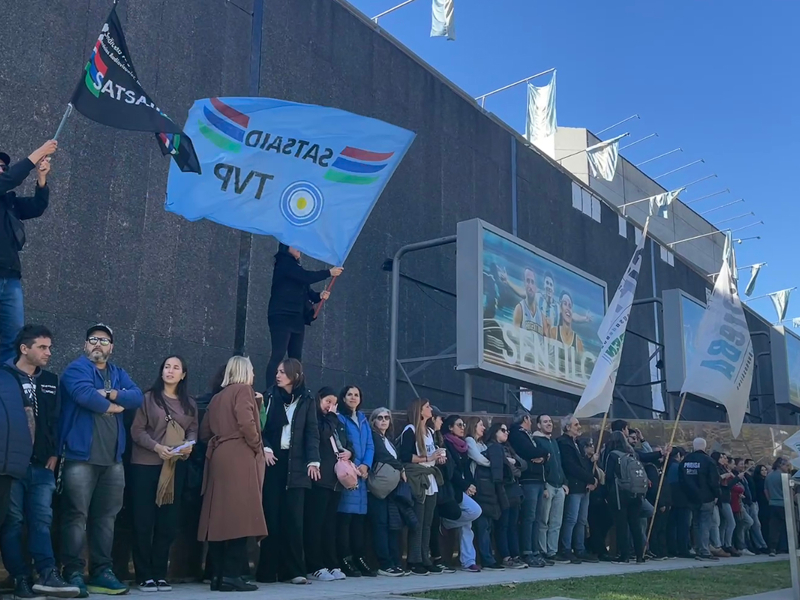 Durante dos horas, la puerta de la TV Pública fue el epicentro de un reclamo urgente y masivo: “Basta de salarios de pobreza en los Medios Públicos”. Con esa consigna, cientos de trabajadores y trabajadoras de prensa reclamaron una recomposición en una medida convocada por el Sindicato de Prensa de Buenos Aires, el Sindicato Argentino de Televisión y la presencia de las centrales obreras (CGT y CTAs). Fuegos artificiales, bombos, banderas, volantes, canciones y los bocinazos solidarios de los autos que desfilaban por Figueroa Alcorta le sumaron fuerza y color a la exigencia dirigida a la intervención estatal dispuesta por el gobierno.