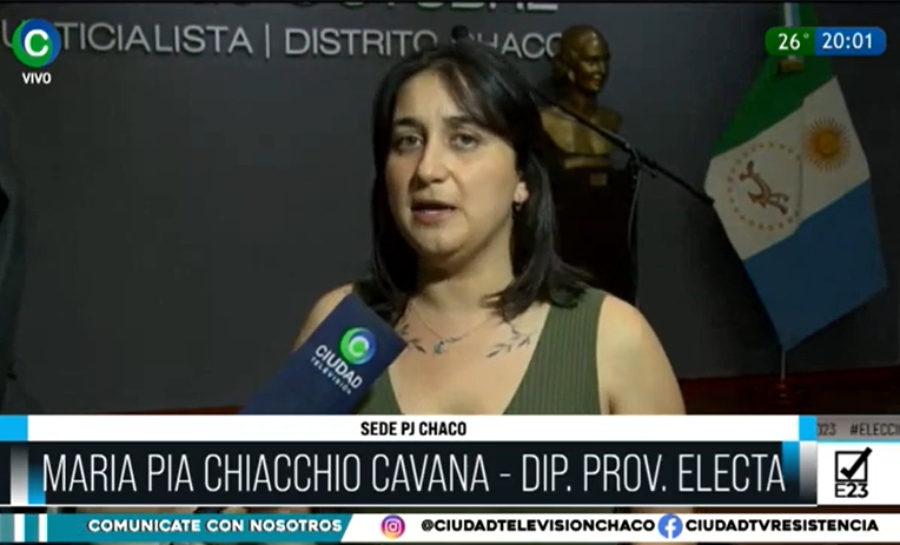 La diputada provincial electa y actual ministra de Desarrollo Social, María Pía Chiacchio Cavana, dialogó con CIUDAD TV sobre la contienda de este domingo y habló de “un año electoral muy complejo, que requirió de mucha participación”. “Aunque muchas veces los resultados no nos han acompañado ni han sido lo que queríamos tuvimos la oportunidad de poder transmitir, garantizar y fortalecer el proceso democrático. Hoy, nuevamente, la comunidad chaqueña pudo ir a votar”, sostuvo.