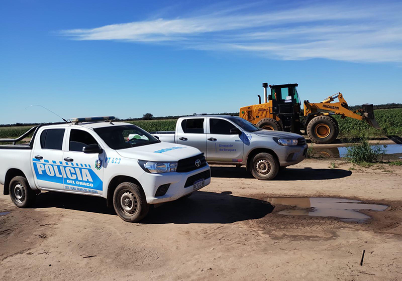 El Ministerio de la Producción y el Desarrollo Económico Sostenible, a través de la Dirección de Bosques que depende de la Subsecretaría de Desarrollo Forestal, detectó y detuvo otro desmonte ilegal en un campo ubicado en el Departamento Almirante Brown, nuevamente en cercanías a la localidad de Los Frentones.