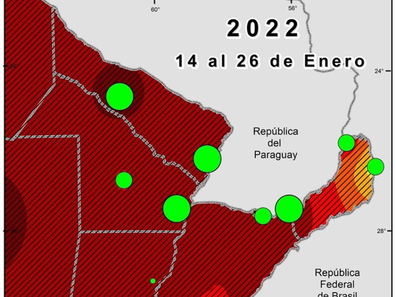 En ese período se destacaron 3 olas de calor: enero 2006; enero/febrero 2014 y enero 2022, porque fueron las más extensas (abarcaron la mayor superficie del área de estudio); duraderas e intensas.
