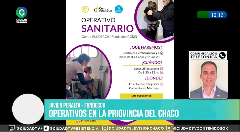 Javier Peralta, responsable del Centro Fundecch CONIN en Sáenz Peña, explicó en diálogo con CIUDAD TV los alcances del operativo sanitario que se realizará el próximo lunes 2 en la localidad de Machagai, con el acompañamiento de la Municipalidad local. “Entendemos que existen una cantidad importante de niños que requieren atención profesional y no están siendo diagnosticados a tiempo. Para eso tenemos operativos de búsqueda activa de niños con desnutrición”, señaló Peralta.