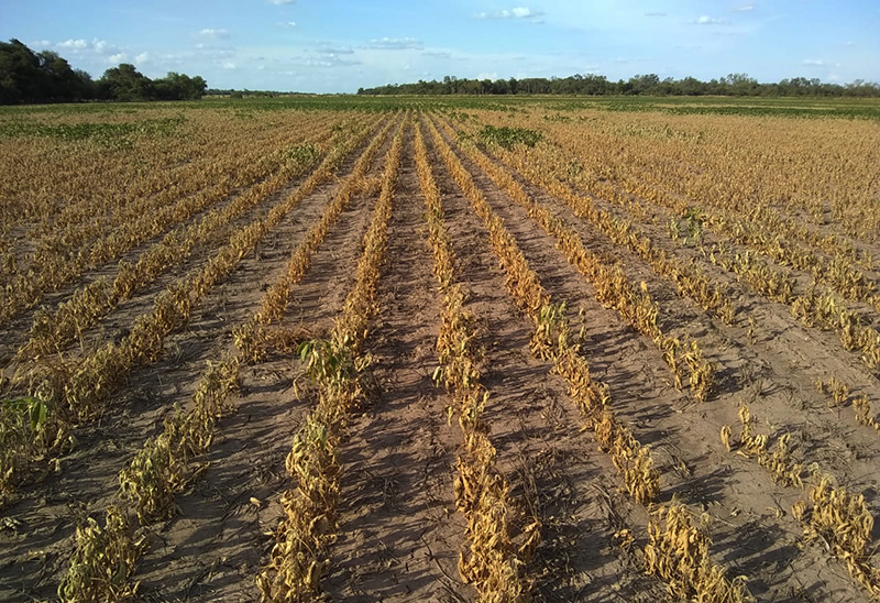 Lote de soja devastado por la sequía.