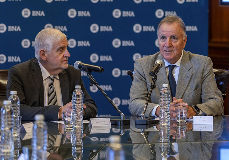 El presidente del BNA, Daniel Tillard, junto al secretario de Bioeconomía, Fernando Vilella, anunciaron este lunes un programa de financiamiento para capital de trabajo e inversión, destinado a productores de maíz afectados por el Spiroplasma, con condiciones especiales. Junto con Bioeconomía presentaron líneas de créditos en pesos y en dólares sin tope máximo y con tasas preferenciales.