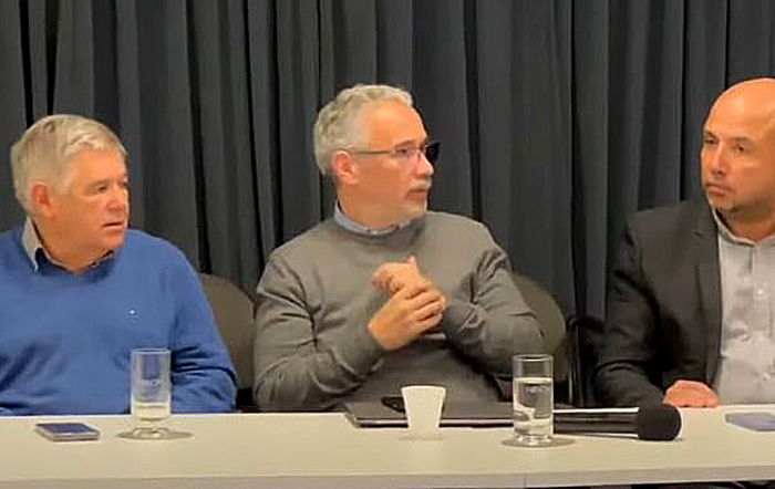 El encuentro tuvo lugar este martes, precedente al primer Taller de Ciberseguridad y Prevención de Estafas en el marco del Ciclo de Educación Financiera para Adultos Mayores, y participaron el presidente de Sameep, Nicolás Diez, el presidente de Secheep, Hilario Bistoletti, el titular del NBCh, Eric Dahlgren, autoridades del Ministerio de Desarrollo Humano, el procurador general de la provincia, Jorge Canteros y fiscales, entre otros.