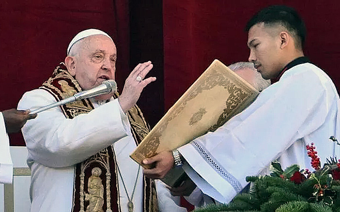 El papa Francisco pidió en su mensaje de Navidad que callen las armas en Ucrania y se "tenga la audacia de abrir negociaciones para una paz justa" y que en Gaza "cese el fuego, que se liberen los rehenes y se ayude a la población extenuada por el hambre y la guerra".