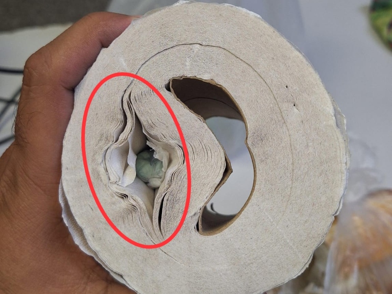 Cuando revisaron todos los elementos descubrieron que dentro de un rollo de papel higiénico había escondido 6 envoltorios con lo que parecía ser estupefacientes. Al lugar arribaron los antinarcóticos y constataron que se trataba de cocaína con el peso total de 0.8 gramos.
