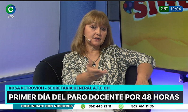 Consultada sobre el anuncio del gobernador Zdero, en la noche del domingo, sobre un aumento salarial a docentes de aumentar en 120 puntos los ya existentes 1.200 que impactan en lo sueldos, Petrovich aseguró que, ”es la vuelta al retroceso tremendo es la reinstalación de la política de los montos en negro en en la política salarial del sector docente en la provincia. Tras varios años a esta parte logramos erradicarla con muchas luchas de por medio y que todos los incrementos que íbamos estableciendo iban direccionadas al sueldo en blanco”.