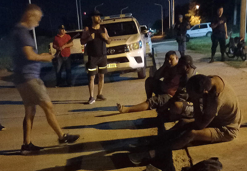 Al notar la presencia policial, los malvivientes intentaron darse a la fuga siendo demorados en el lugar, en tanto otro sujeto que se hallaba en la vereda entre ambas camionetas, ingresó a una vivienda, agarró una escopeta que se hallaba junto a una reja y amenazó con abrir fuego contra el personal policial, haciendo caso omiso a la voz de alto policía, logrando ser demorado.