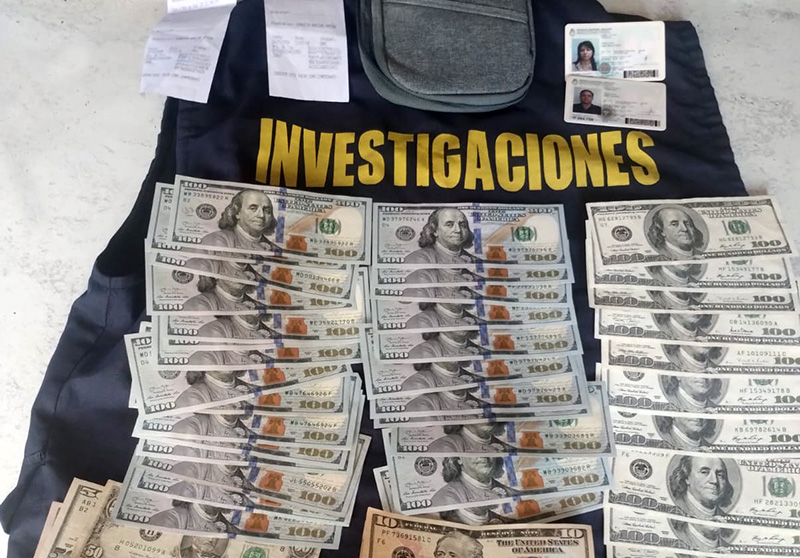 Tras tareas de seguimiento, efectivos de la División Investigaciones Complejas llegaron hoy hasta el domicilio de la mencionada pareja, quienes entregaron el mencionado bolso con todos los dólares y otras documentaciones.