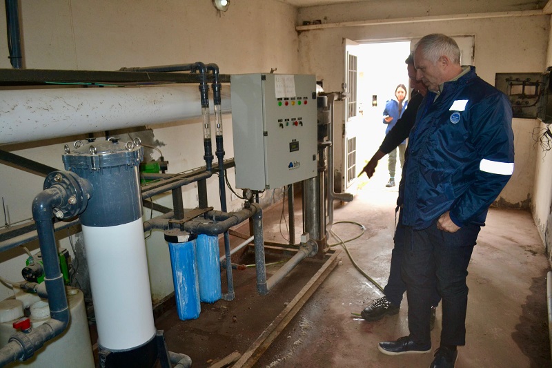 Durante la recorrida, el vocal Pereyra Iglesias constató el funcionamiento de los tres sistemas de abastecimiento de agua en el acueducto, la planta de ósmosis del barrio Madres Plaza de Mayo y la planta de ósmosis del hospital de la localidad.