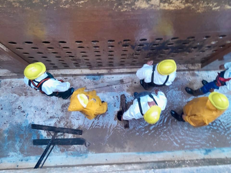 Concretamente se trata del decantador 5 de la Planta Número 2 ampliación, con un promedio de 3 metros de barro. Con la colaboración del personal de Cisterna Sur-Gerencia de Servicios, de Higiene y Seguridad y del personal de la Gerencia Electromecánica se llevan adelante tareas que implican modificaciones estructurales y parte del sistema obsoleto de barrido implementado oportunamente. Además, se aprovecha la disminución de temperatura a fin de no complicar la producción de dicha planta.