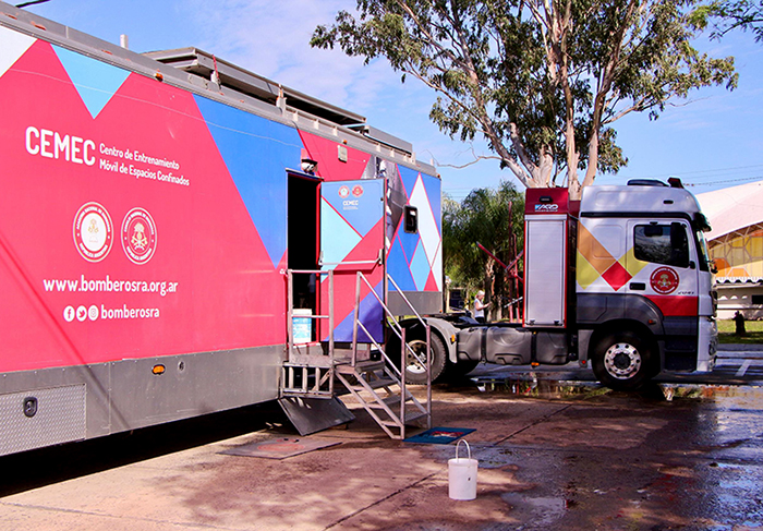 La vicegobernadora Silvana Schneider y el ministro de Gobierno, Justicia, Trabajo y Derechos Humanos Jorge Gómez presentaron, este miércoles en el Domo del Centenario, el Simulador del Centro de Entrenamiento Móvil para Espacios Confinados (CEMEC) donde se realizarán formaciones a bomberos voluntarios, de la Policía del Chaco y de la Administración Nacional de Aviación Civil (ANAC).