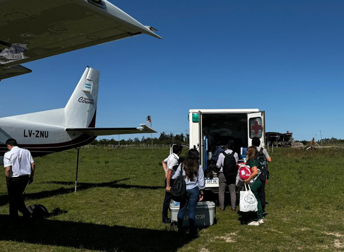 También, destaca el trabajo del equipo de la Dirección Provincial de Aeronáutica de Corrientes, quien posibilitó, por ser política de estado del gobernador Gustavo Valdes, que los pilotos Gonzalo Billordo y Carlos Godoy trasladen, con el avión sanitario de la provincia, al equipo del CUCAICOR desde Corrientes hacia Paso de los Libres en el menor tiempo posible.