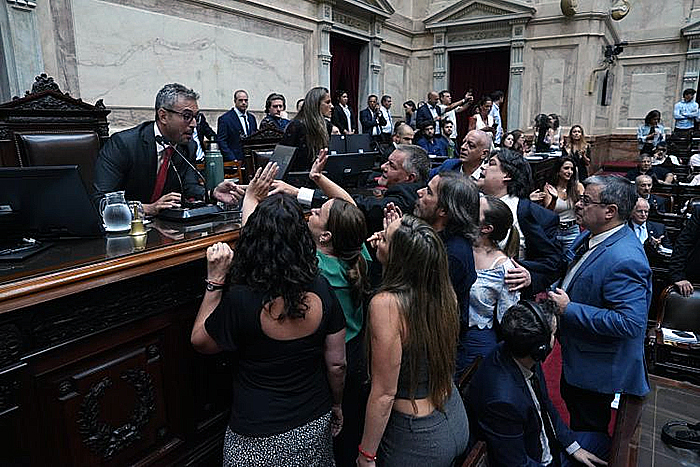 La disputa por el mecanismo de votación y los tiempos del debate terminó desbordando el recinto, con escenas de caos y un bloque opositor que cuestionó la legitimidad del plan de labor aprobado a mano alzada.
