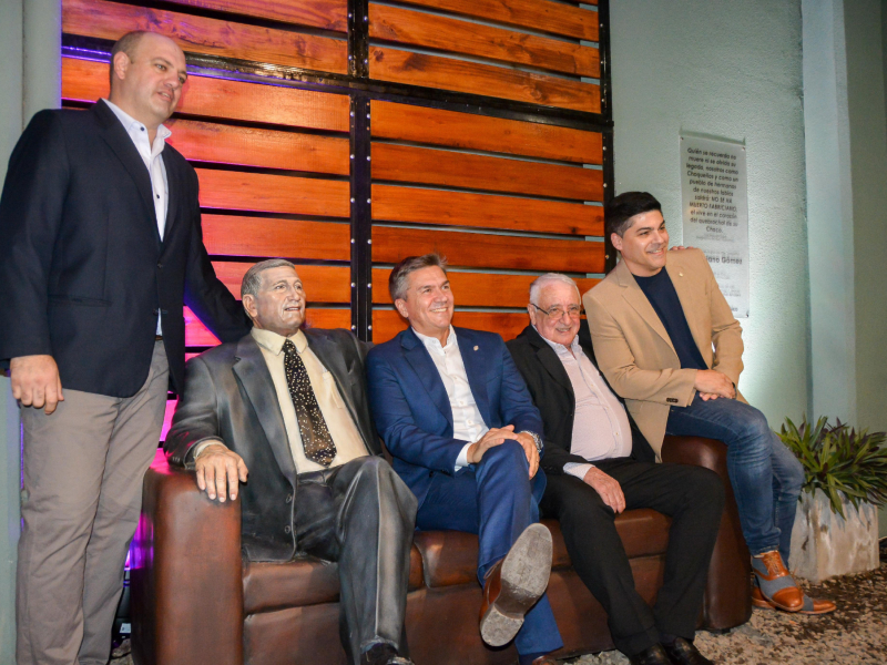 El gobernador Leandro Zdero acompañó, en la noche de este lunes, de la inauguración de la escultura homenaje a Fabriciano Gómez emplazada en el patio de la Casa de las Culturas de Resistencia que además contó con un saludo muy especial del abanderado del Chaco, Don Luis Landriscina. La obra fue gestionada por “Amigos del Chaco”; también participaron el presidente, la vicepresidente del Instituto de Cultura del Chaco, Mario Zorrilla, Daniela Valdez y el vocal Marcelo Dojas.