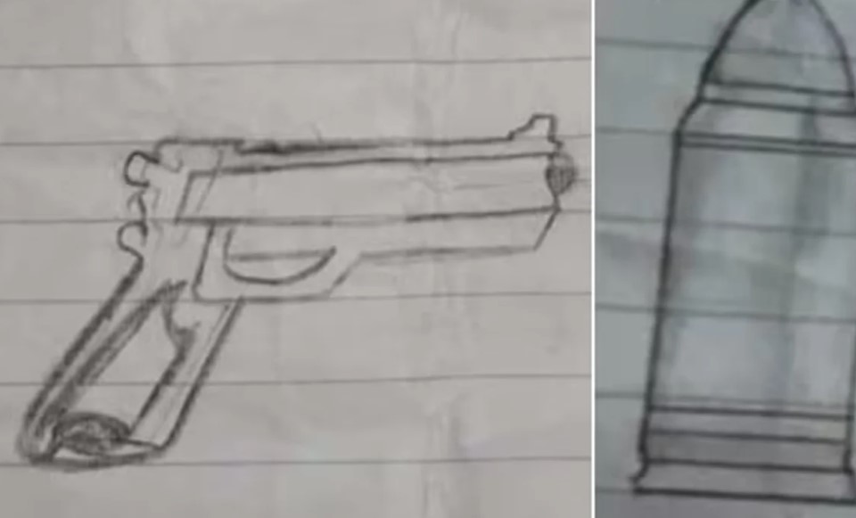 Al requisar el bolso se constató que había una pistola, sumado a diversos papeles donde había dibujos de armas, una lista con los nombres de 14 compañeros, frases en ruso y hasta apuntó contra su maestra de Ciencias Naturales.