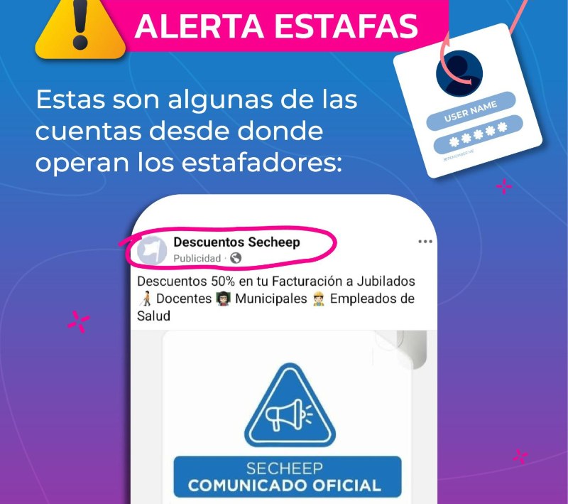 Secheep advierte y reitera a la comunidad, estar alertas ante nuevos intentos de estafas a través de cuentas falsas de Facebook, llamadas telefónicas y/o de WhatsApp que utilizan el nombre de la empresa energética.