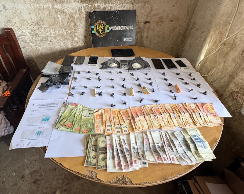 En el tercer domicilio, los efectivos detuvieron a un hombre de 34 años, y en ese lugar incautaron 44 envoltorios de cocaína con un peso total de 52 gramos de la misma sustancia, 62 recortes de polietileno, seis teléfonos celulares de diferentes marcas, y $155.570 pesos en efectivo.