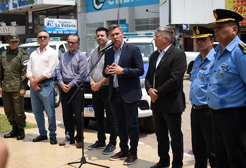 Zdero entregó, este jueves, junto al ministro de Seguridad Hugo Matkovich, al Jefe de Policía, Fernando Romero y al intendente Bruno Cipolini, seis nuevos vehículos policiales que serán distribuidos en las comisarías de Presidencia Roque Sáenz Peña. De esta manera avanza el plan integral de seguridad en toda la provincia.