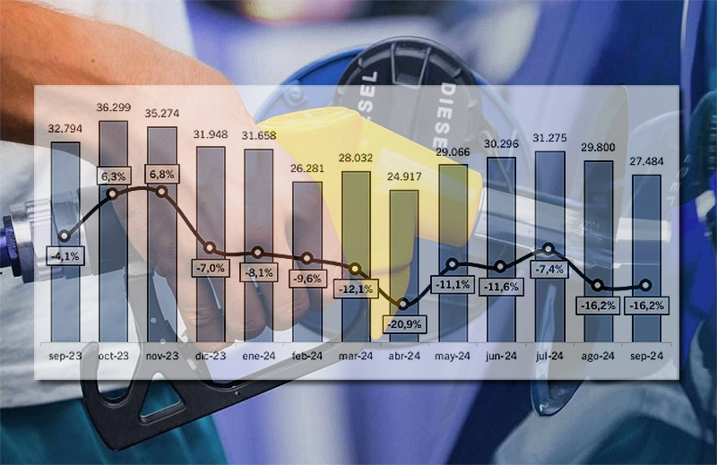 En septiembre de 2024 se vendieron en todo el país 1,31 millones de metros cúbicos de combustible al público. De ese total, el 56% de las ventas de correspondió a naftas y el 44% restante a gasoil.